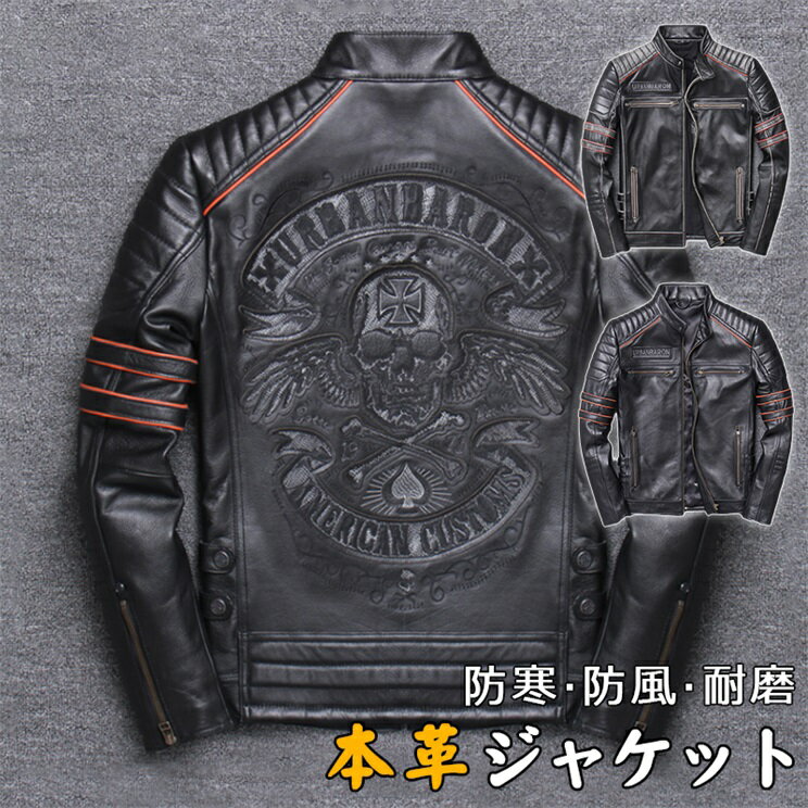 革ジャン 本革 メンズ レザージャケット 牛革 ライダース バイク 本革ジャケット ...