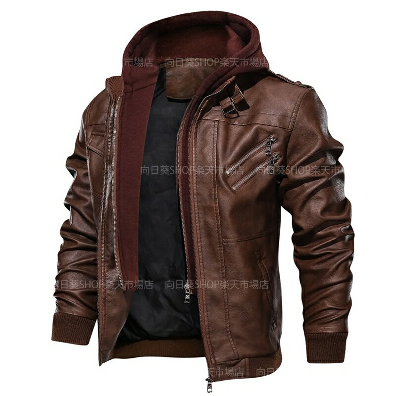 革ジャン おしゃれ メンズ レザージャケット フード付き 合成革ジャケット バイク ...